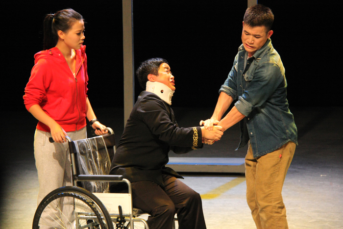 作为我院首部原创小剧场音乐话剧,该剧导演夏帅提到最多的便是“原创”,“现在原创的音乐剧作品很少,而关于大学生活的更是凤毛麟角。《青春不作弊》在创作伊始就是关于大学校园题材的一种尝试,这种题材能更贴近校园,更能触动学生们的心灵”。作为该剧男主角,10演艺的班长蒋涛很有感触:“演艺专业向来注重培养学生的一专多能,这一次音乐话剧给我们提供了一个很好的平台,让我们能学以致用,把学到的知识都合理组合起来展现给大家。舞台虽然小的,梦想却无限大,通过这段时间排练,也让大家成长了很多。”