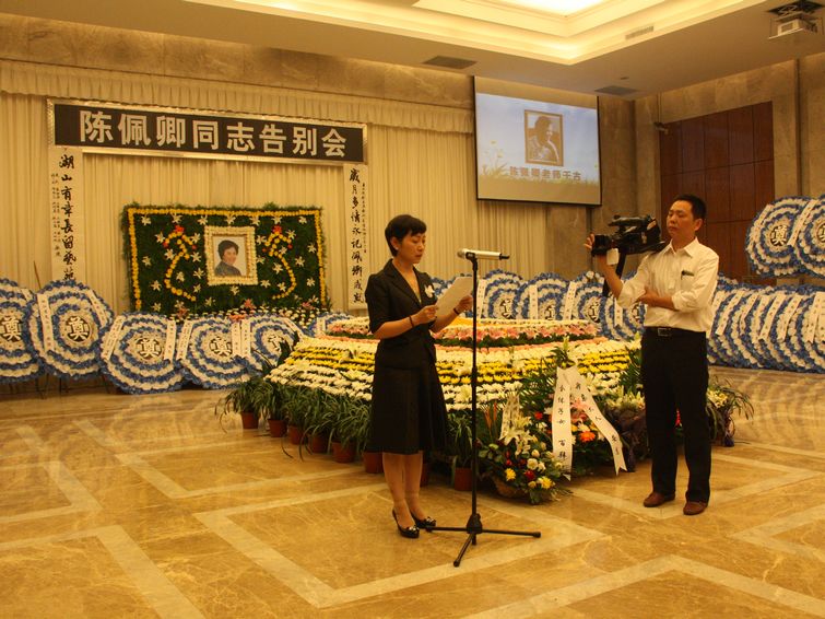 林国荣致告别词。他在告别词中说:“今天我们怀着十分沉痛的心情,在这里送别著名越剧表演艺术家、全国先进工作者、中国戏剧家协会会员、浙江省民进会员、原浙江戏剧家协会常务理事、原浙江艺术学校教师陈佩卿老师。陈佩卿老师于2012年9月16日11时35分在浙江省人民医院不幸逝世,享年84岁。”