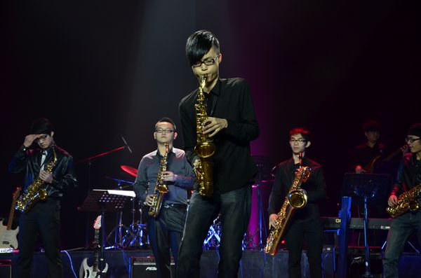 音乐系2014届流行专业毕业汇报是暨开幕式之后的第一场演出,整场演出以萨克斯为主线,灯光、律动、歌声、掌声不绝于耳。萨克斯版的《莫斯科郊外的晚上》一改往日深沉忧郁的风格,以欢快的节奏重新诠释经典。“犹抱琵琶半遮面”的古典吉他弹奏温婉优雅。当然,晚会不仅有激情澎湃的摇滚乐,吉他与萨克斯、架子鼓的和声,它还能演奏出静谧悠扬的乐曲,一曲静谧悠扬的《canaion irina kircher曲》,仿佛一泉流水流淌进心里。一首《I hate myself for loving you》掀起整场晚会的高潮,主唱与乐队以他们的强大的气场与昂扬的热情征服了全场。演出在旧民歌新演奏的乐曲——《马灯调》中落下帷幕。