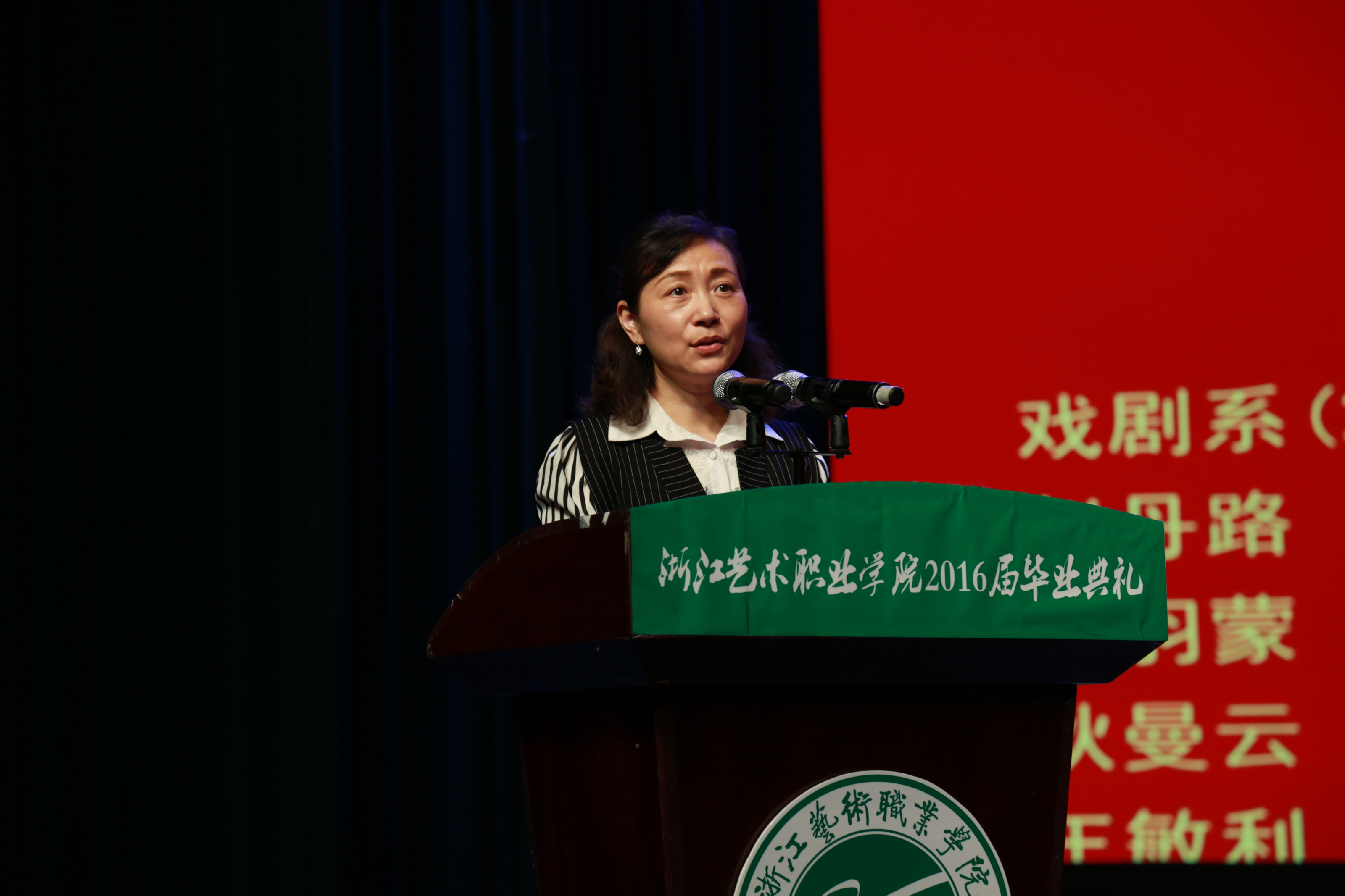 在教师寄语环节,一位位曾陪伴他们走过三年青春的老师在大屏幕上现身,殷殷嘱咐并祝福毕业生们,今天毕业,我们离校不离心,离师不离训,在今后人生道路上做一个清醒的圆梦者,在坚守与改变中不断前行。在外地出差的学院党委书记朱海闵也通过视频祝福毕业生,前程锦绣、人生精彩。她说,在离别的时刻,古人常常折下柳枝告别,因为柳与留谐音,李白留下了诗句“此夜曲中闻折柳,何人不起故园情”。未来,无论你们飞得多远,走得多久,浙艺将始终是你们的“故园”。愿你们坚定、勇敢、执着地向着自己的梦想努力,在创造的生活中谱写诗行,在脚踏实地的奋斗里寻找远方。