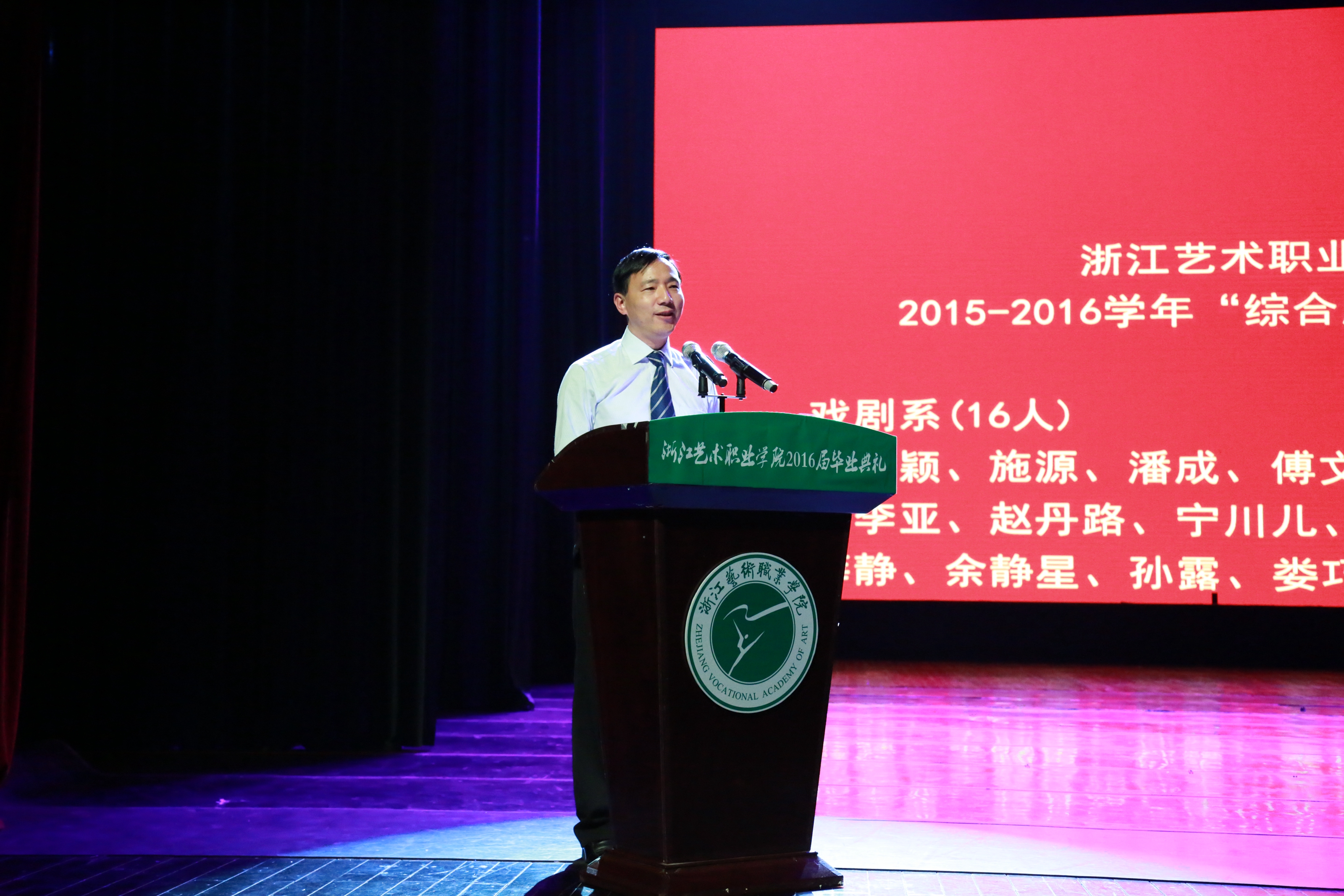 毕业典礼主持人、副院长沈恒的主持词也充满了情感,“感谢你们当初选择和加入浙艺,让学院更具活力;感谢你们的勤勉和朝气,让学院更添魅力;感谢你们的付出和成绩,让学院更具实力。希望你们永远珍藏大学里的难忘时光,珍惜彼此结下的深情厚谊……”