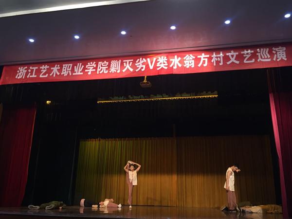 剿灭劣V类水,浙艺在行动,采风巡演活动充分发挥了浙艺师生在艺术方面的特长,为广大基层群众送文化、送服务。同时,大家通过采风巡演活动更加深入地了解、宣传了“五水共治”、剿灭劣V类水,在社会实践中认识社会、感知社会、服务社会,激发爱国爱乡情怀,磨练意志品质。