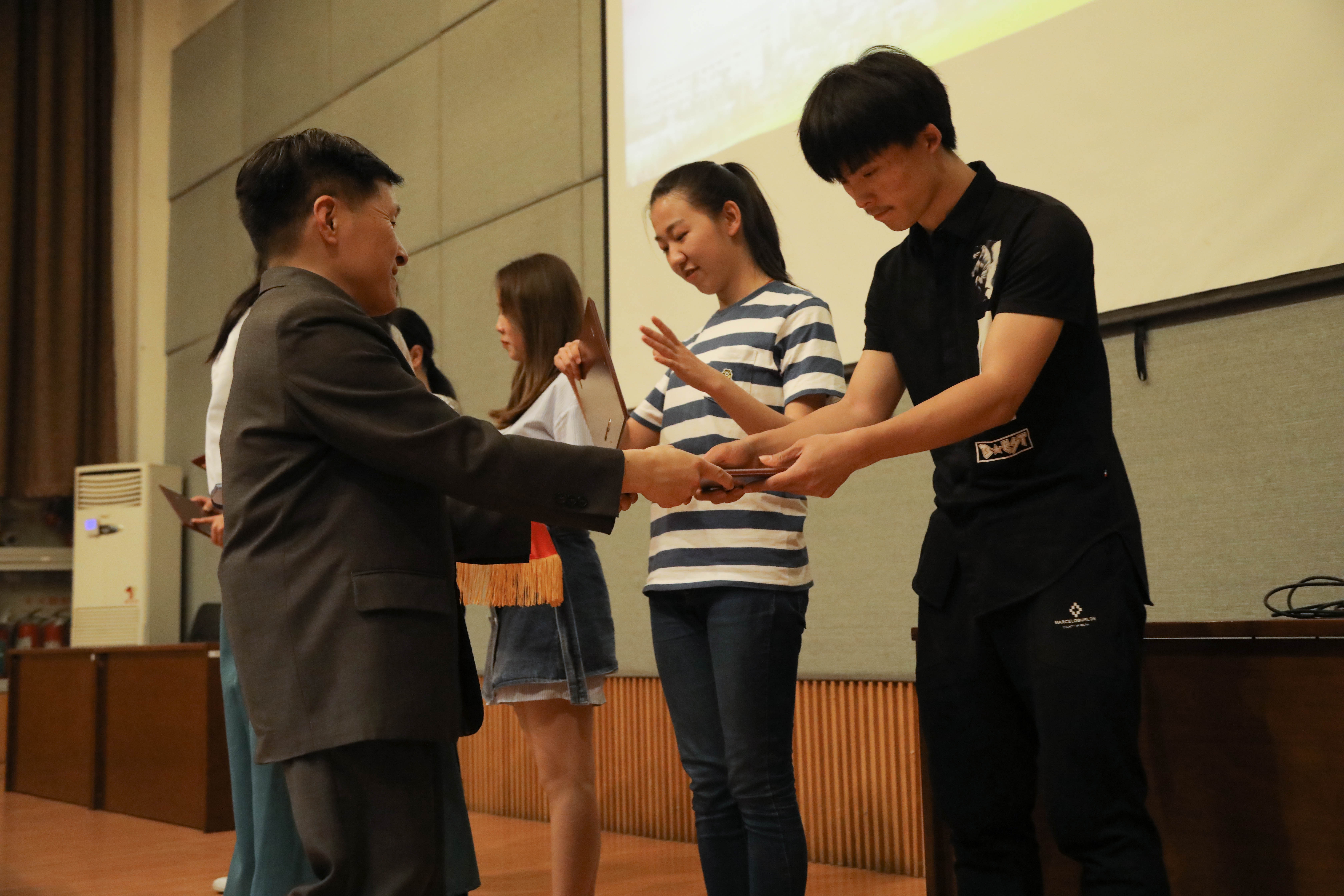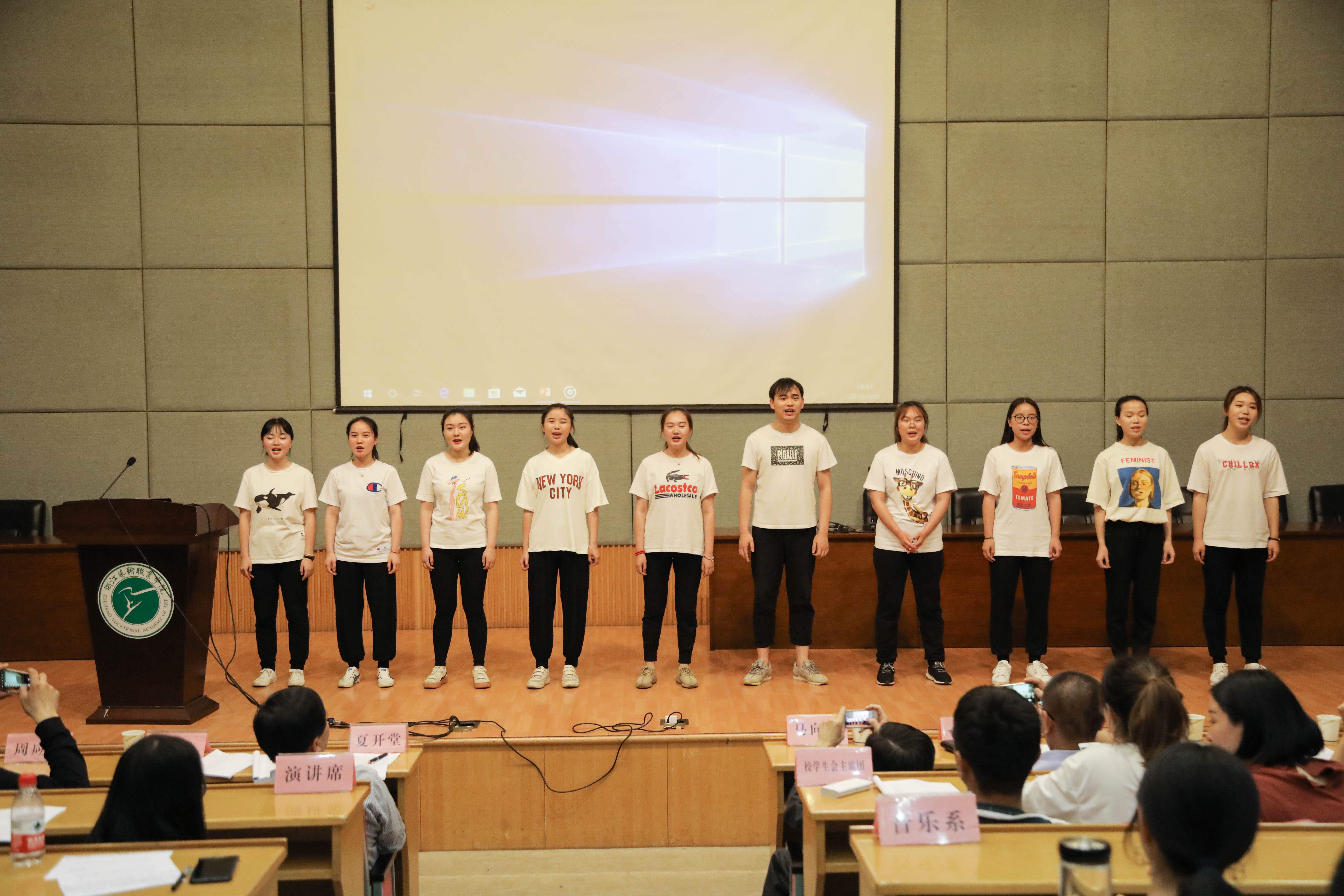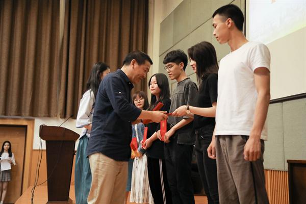 在第二批文明修身示范实验班验收汇报中,来自全院的十三个文明修身示范实验班用各种各样的方式诠释了班级积极向上、团结奋进的风采与“文明修身”。16声乐班用小合唱深情演绎浙艺校歌《梦想开始的地方》,15广告演绎了别样的“班兴我荣,班衰我耻”的团结精神,15舞台班从毕业生就业实习的角度表达了踏上社会后对母校更深层次的情感,16展示班用他们入校以来的剪纸、动物标本等作品诠释了专业特色与青春活力,16公共文化班作为浙江省第六届职业院校“挑战杯”一等奖的获奖班级,现场展示了他们的非遗手工艺作品扎染、蓝印花布等等。验收活动凝结了学生们满满的青春正能量与奋斗热情。随后,马向东为验收通过的班级颁发了荣誉证书。