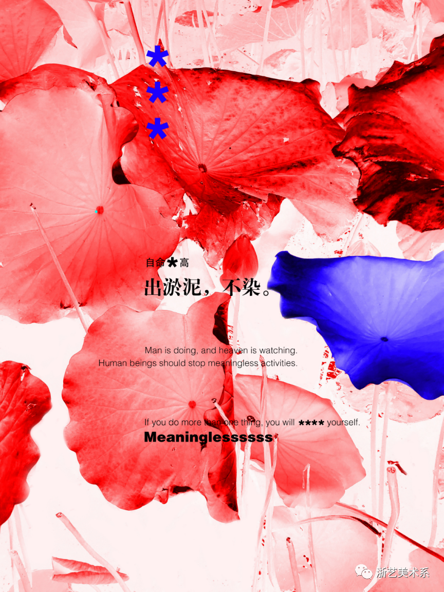 概念海报作品《出淤泥,不染》、《胜者王,败者寇》获铜奖;《人在做,天在看》获优秀奖,三张作品为系列设计。海报从社会现实出发,采用比拟、反语的设计修辞,充分发挥了作者以摄影的形式去寻找独特视觉语言的专长,作品映射出为人处世应有的行为规范和道德准则。