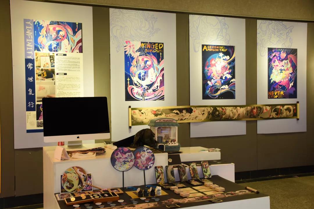 展览由2019级广告艺术设计和2020级广告设计与制作3+2班共78位同学精心设计与制作,充分展现了广告艺术设计专业学生的专业能力、创新思维和责任意识,展览现场热闹非凡,精致有趣的各类视觉延伸品吸引着观众的眼球,师生们热情地为观众讲解这些产品背后的文化内涵与设计。