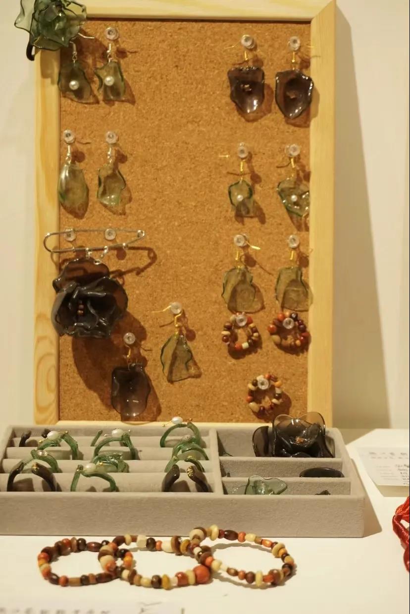 “谁家浴罢临妆女,爱把闲花插满头”花自古以来就是女子作为打扮的装饰品。在头饰花的设计上,融入了现代元素,经过特殊烧制的塑料加上钻石的点缀,“烟熏”出水墨肌理,使其更具时尚感。这样别致的毕业作品来自于2019级民传班的胡雯潇。