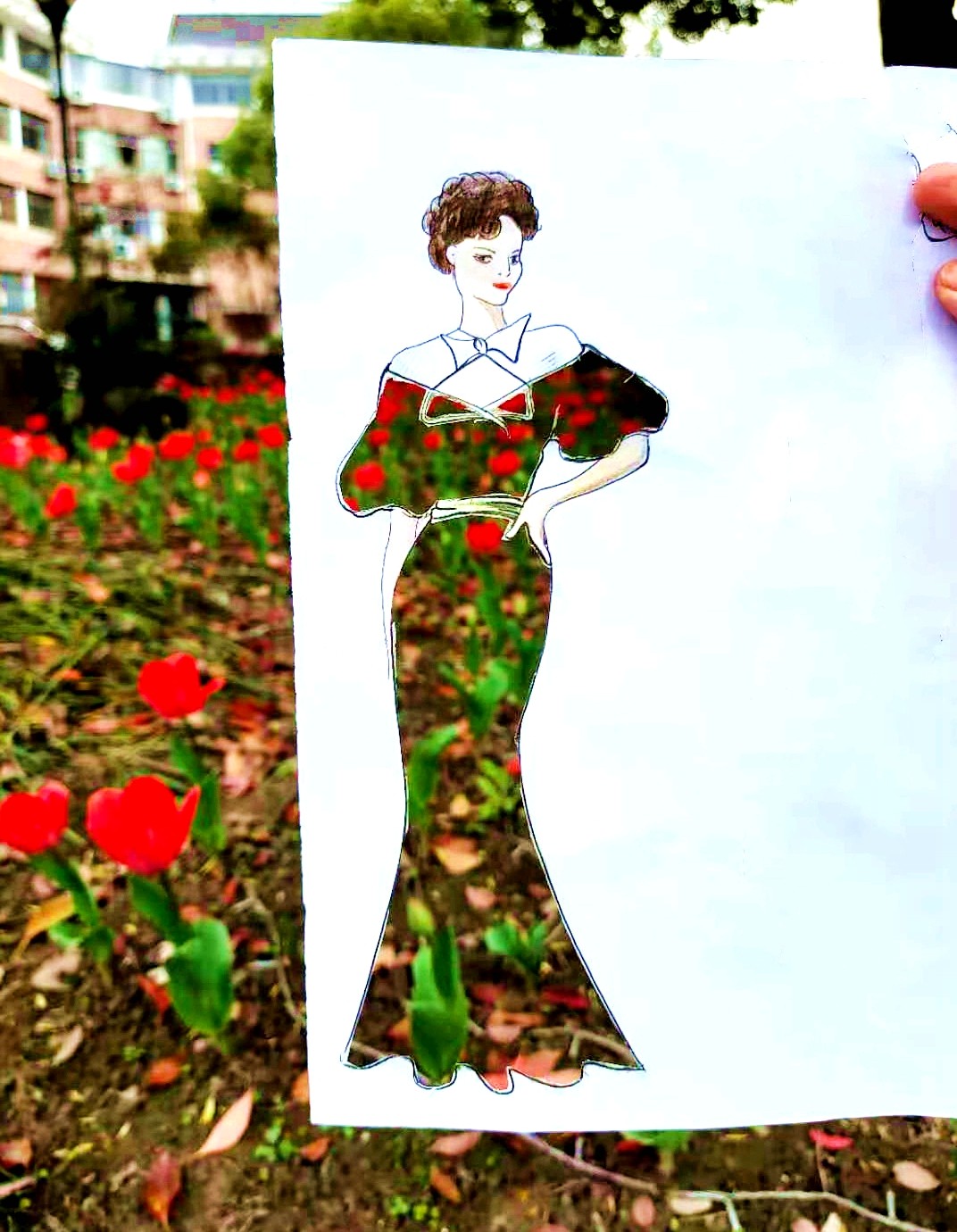 当服装设计图遇上花海