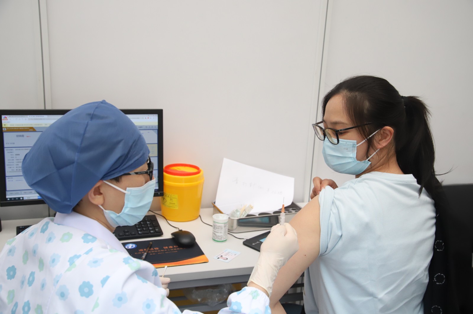 接种完疫苗后,文化管理系教师胡锦霞说:“今天开始多了一份保护,接种疫苗,让我们共同筑起防御墙,保护自己和大家的安全。”