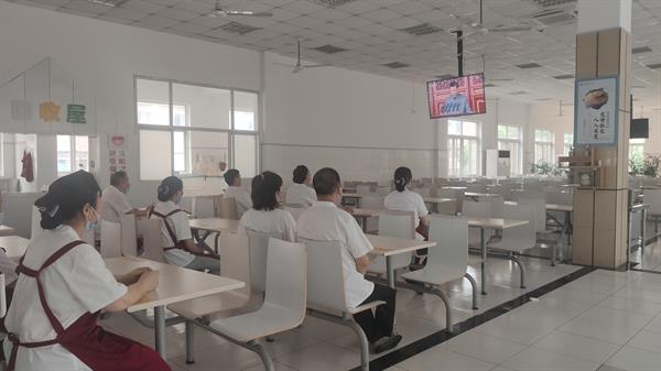 8点整,教职工们准时聚集在1108会议室,观看激动人心的历史时刻,另有工作安排的食堂师傅们、车队师傅们和值班医生们也在他们的岗位上用手机收看了此次直播。