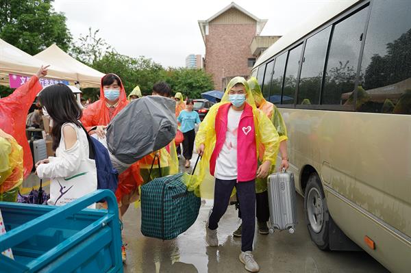 虽然天空下起了小雨,但雨水丝毫无法冲刷同学们的热情。兴奋,激动,却也少不了紧张,但更多的还是憧憬。他们的大学生活,以脚下这块土地为起点,开始!
