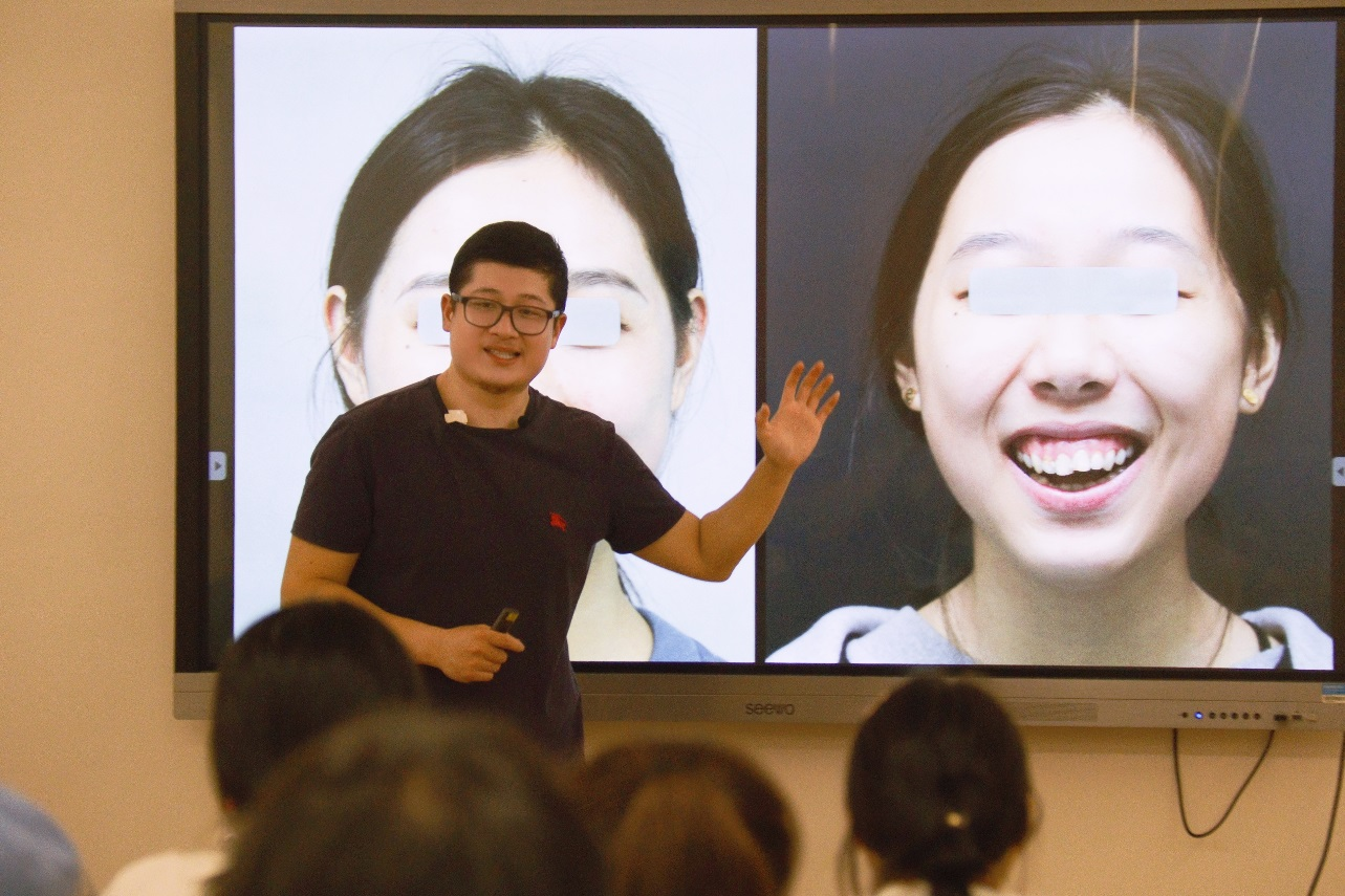 讲座由浙江中医药大学附属口腔医院修复科副主任郑胜主讲。他以“健康和谐之美”为切入点,用丰富的案例,生动形象的语言,传递口腔健康信息,使我校师生认识到并能终生保持口腔健康的重要性。讲座结束后,郑胜为与会师生答疑解惑。