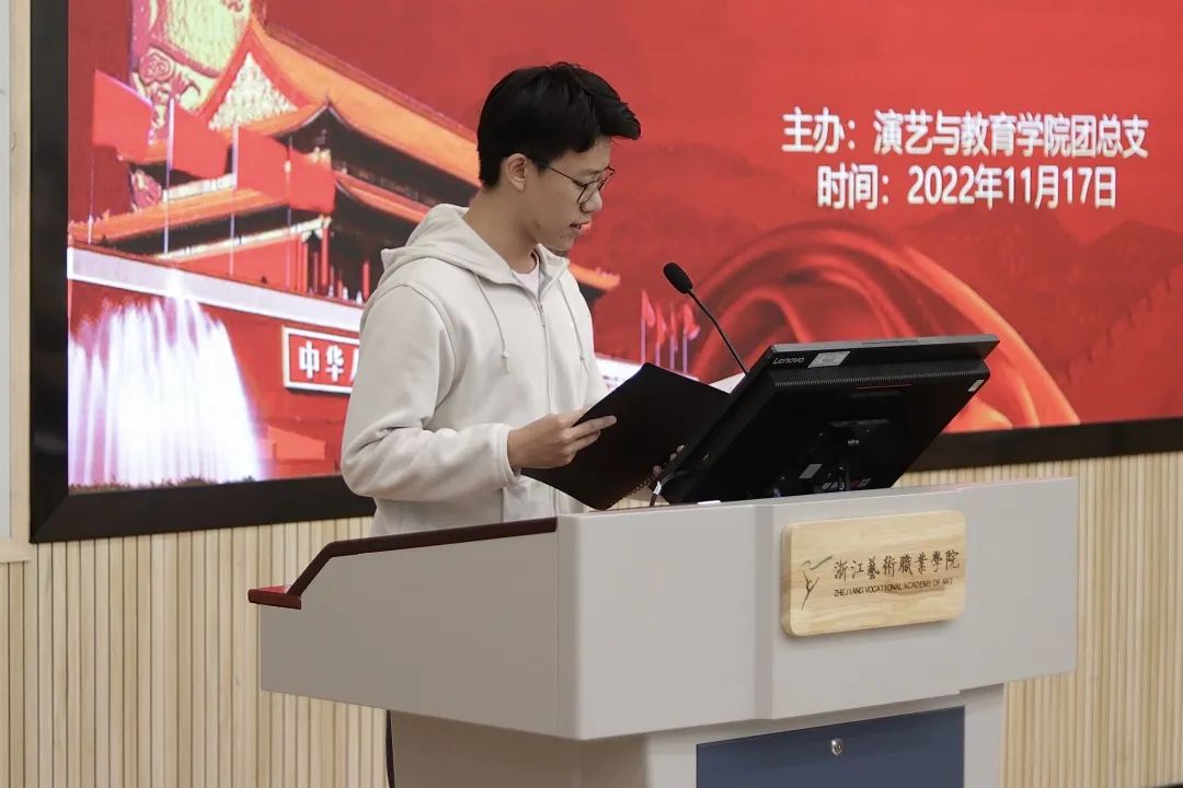 为深入学习宣传贯彻习近平新时代中国特色社会主义思想和党的二十大精神,充分了解党的二十大报告,发挥在青年思想中的引领作用,11月17日,演艺与教育学院在阶梯一教室里开展了“献礼二十大 青春心向党”二十大报告微朗读比赛。