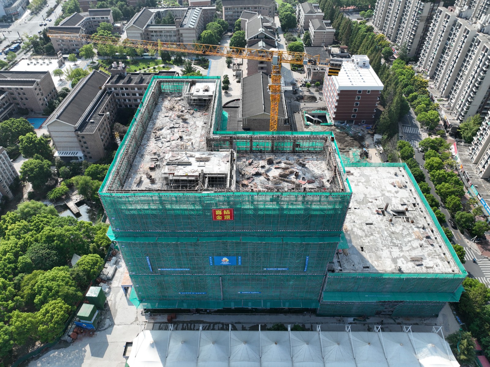 浙江艺术职业学院教学综合楼及学生宿舍楼建设项目在上级有关部门和滨江区住建局、规划局的关心支持下,历经650多天的奋战,于2022年9月18日顺利结顶,为该大楼在明年秋季开学投入使用打下坚实基础。