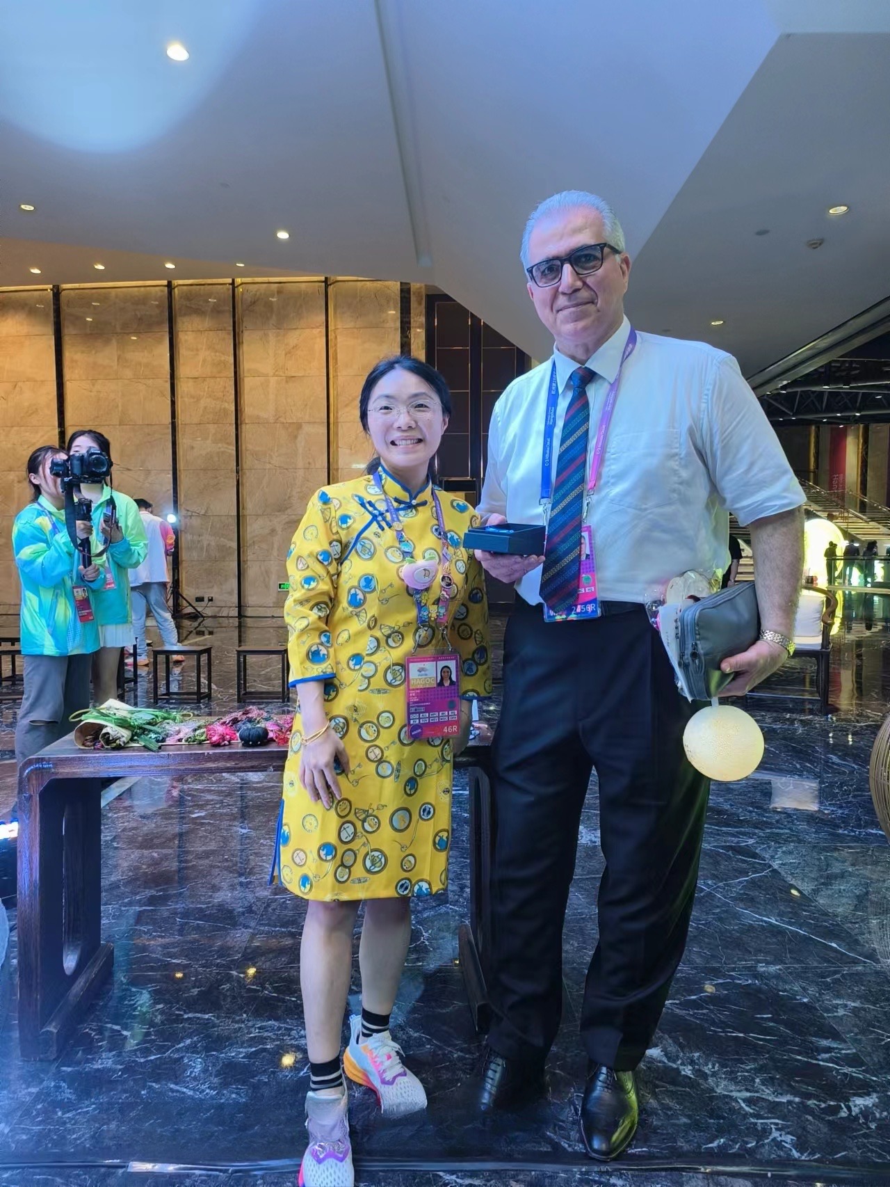 在亚运期间,我服务的贵宾是来自亚奥理事会副主席Takeda Tsunekazu先生,在交谈相处后,发现Takeda先生是一位非常具有体育精神的人,他的每一场观赛都非常专注。他曾经是一位马术运动员,在马术赛事期间我陪同Takeda先生每天前往桐庐马术中心,我也第一次关注到马术这项运动。这是所有的赛事中唯一一项运动员与动物同场竞技的运动,赛程中不乏出现骑手与马匹配合不当以至于被甩下马的情况,深刻体会到每一项运动的精彩与不易。在亚运赛事期间,Takeda先生多次为竞赛获胜者颁奖,我也有幸全程见证了幕后工作人员有效的引导,深感荣幸自己也能成为亚运工作者之一,每一个场馆、每一个领域的工作人员、志愿者都展现了杭州人民独特的魅力风采。此次亚运之行,对我来说,感触颇深,感谢浙艺提供了一次亚运限量版体验,希望可以将亚运精神带回浙艺继续传递下去。
