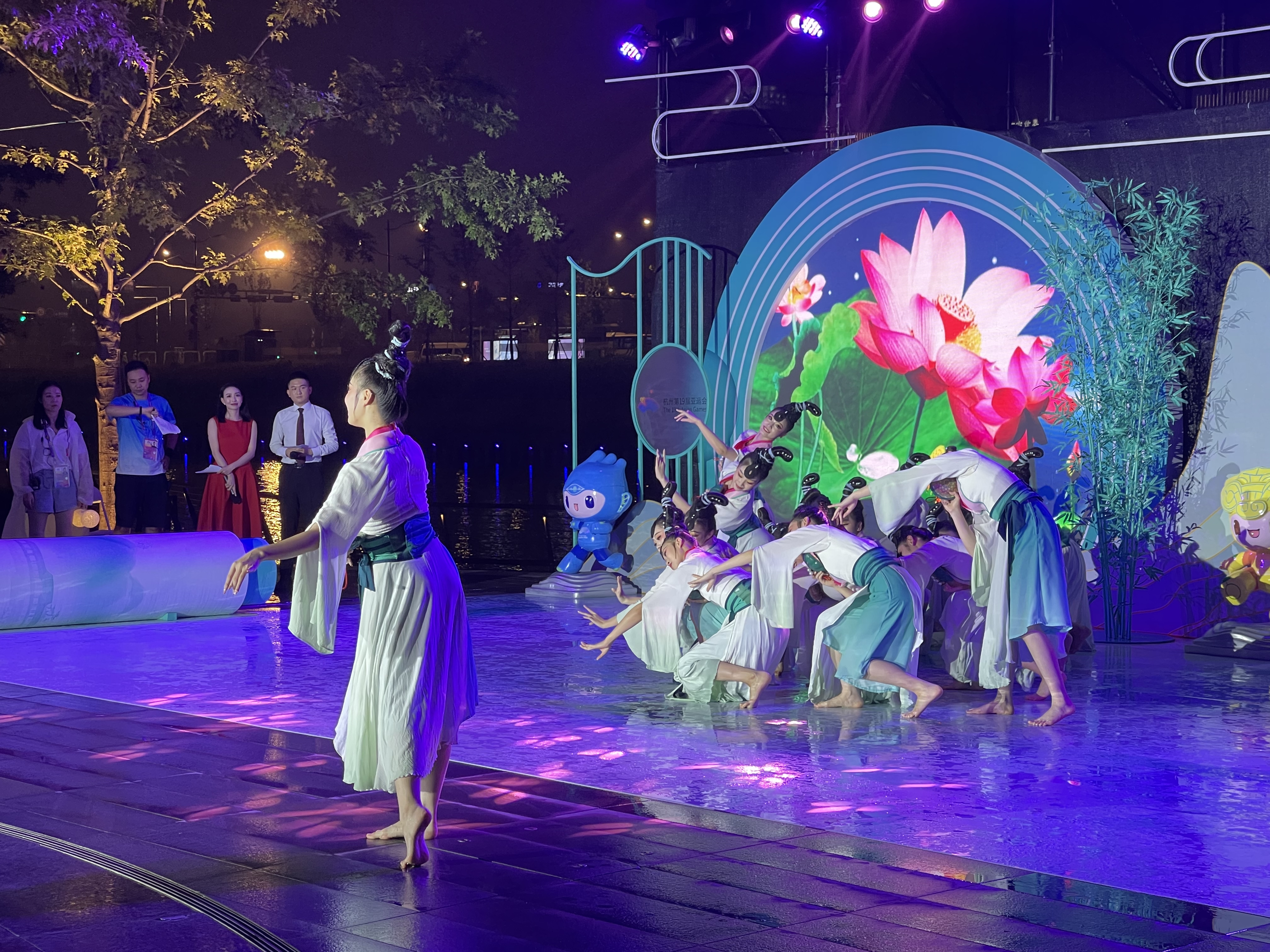 秋风拂面,丹桂飘香。整场晚会时而欢快喜悦,时而婉转悠扬,传达出中国传统文化的厚重与温度,营造了独属于杭州的浪漫氛围。演出期间下起了淅沥小雨,但台上台下互动氛围热烈,外国友人纷纷和采莲女合影留念。