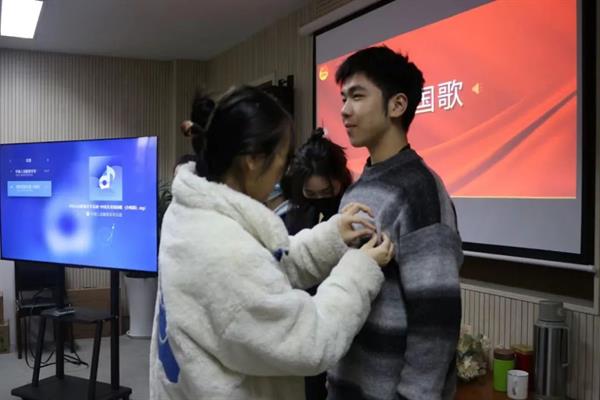 为壮大中国共产主义青年团的鲜活力量,深化团的自身建设,切实培养团员的光荣感和使命感,增强团员的进取意识,为团组织注入新的活力,戏剧影视学院团总支于1月18日在4210会议室举行2023年下半年新团员入团仪式。戏剧影视学院学工主管颉顺虎、团总支副书记侯明妍出席,新、老团员代表参加。本次活动由团总支书记周鑫妍主持。