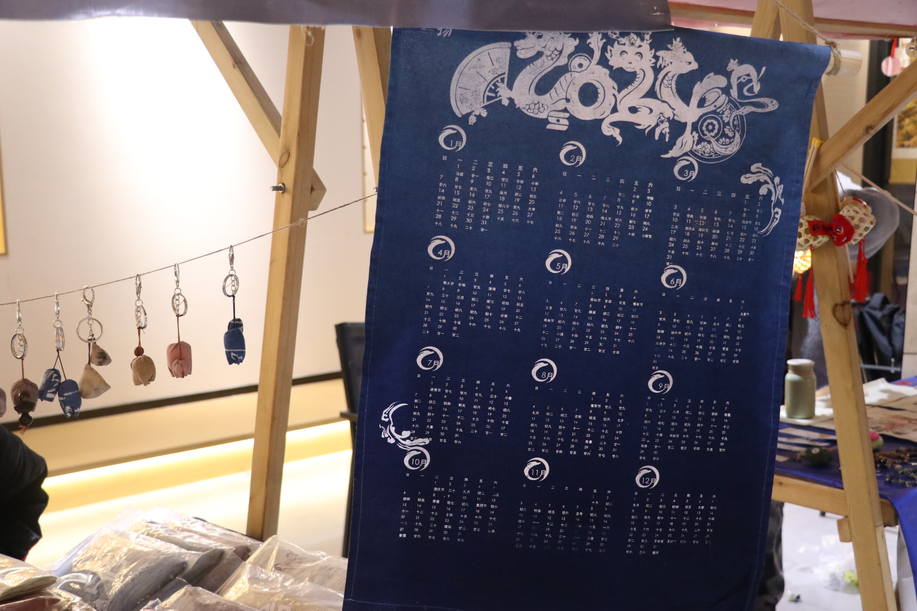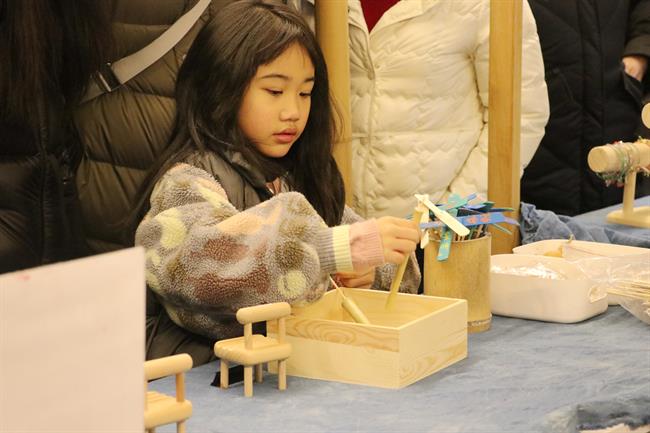 活动当天,赏灯游园会区域,在手工艺学院学生们的摊位上,用草木染制作的围巾、饰品、蓝染年历、水印木刻挂历、竹编花灯、青瓷花口杯、手工手链、挂饰、书签……传统手工艺品琳琅满目,引得游客纷纷驻足。学生利用自身所学知识,在传统技艺的基础上融合新春、元宵的元素,充分推广传统手工艺的独特魅力,通过静态展陈和动态展演让古老手工艺焕发出新的生机,让游客近距离感受到非遗之美,体会别样的年味。