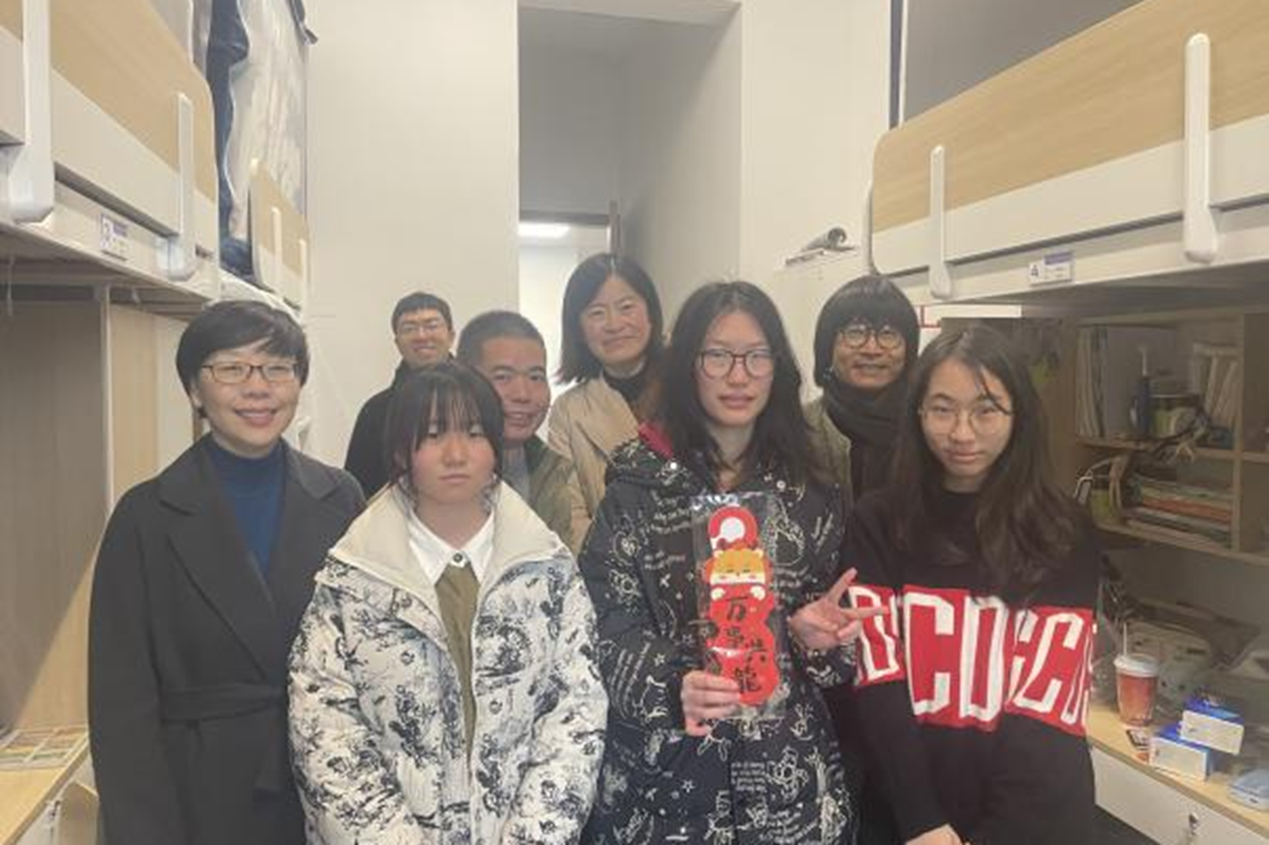 设计学院领导班子、全体班主任和辅导员走访学生寝室,细心查看宿舍环境,关注每一位学生的返校情况,询问学生的学习生活需求,为学生送上关怀,叮嘱学生认真完成劳动教育,保持整洁干净的寝室卫生环境。老师们还精心准备了富含龙年元素的春联、挂件,写满了对学生的美好寄语,让浓浓的年味与深深的人文关怀交织在一起。