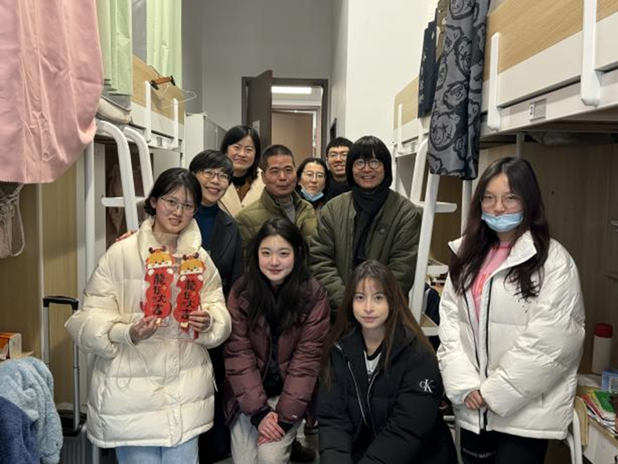 为保持与学生的零距离接触,进一步了解学生生活环境和生活状态、关怀学生思想和学习近况,增进师生间的情感交流。设计学院领导班子、绘画班班主任及辅导员一行,怀着满腔的热情和对学生们的深切关怀,走访了学生寝室,与同学们亲切交流,为学生们送上温馨的祝福和新年的美好期许。