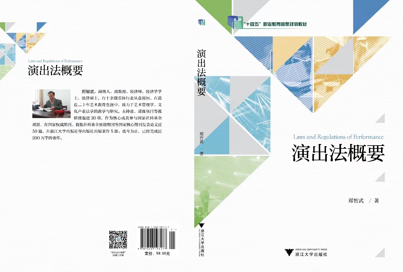 郑智武教授20余年来一直专注于艺术法制度与文化产业法制度领域的研究,并取得了丰厚成果。迄今为止,他已完成省部级、厅级科研项目30余项,同时作为核心成员参与多项国家社科基金项目,在国家权威和核心期刊上发表60余篇专业论文,出版学术专著2部,主编和参编教材6部。其中,《演出法概要》一书入选“十四五”职业教育国家规划教材和省高职院校“十四五”重点教材建设项目。