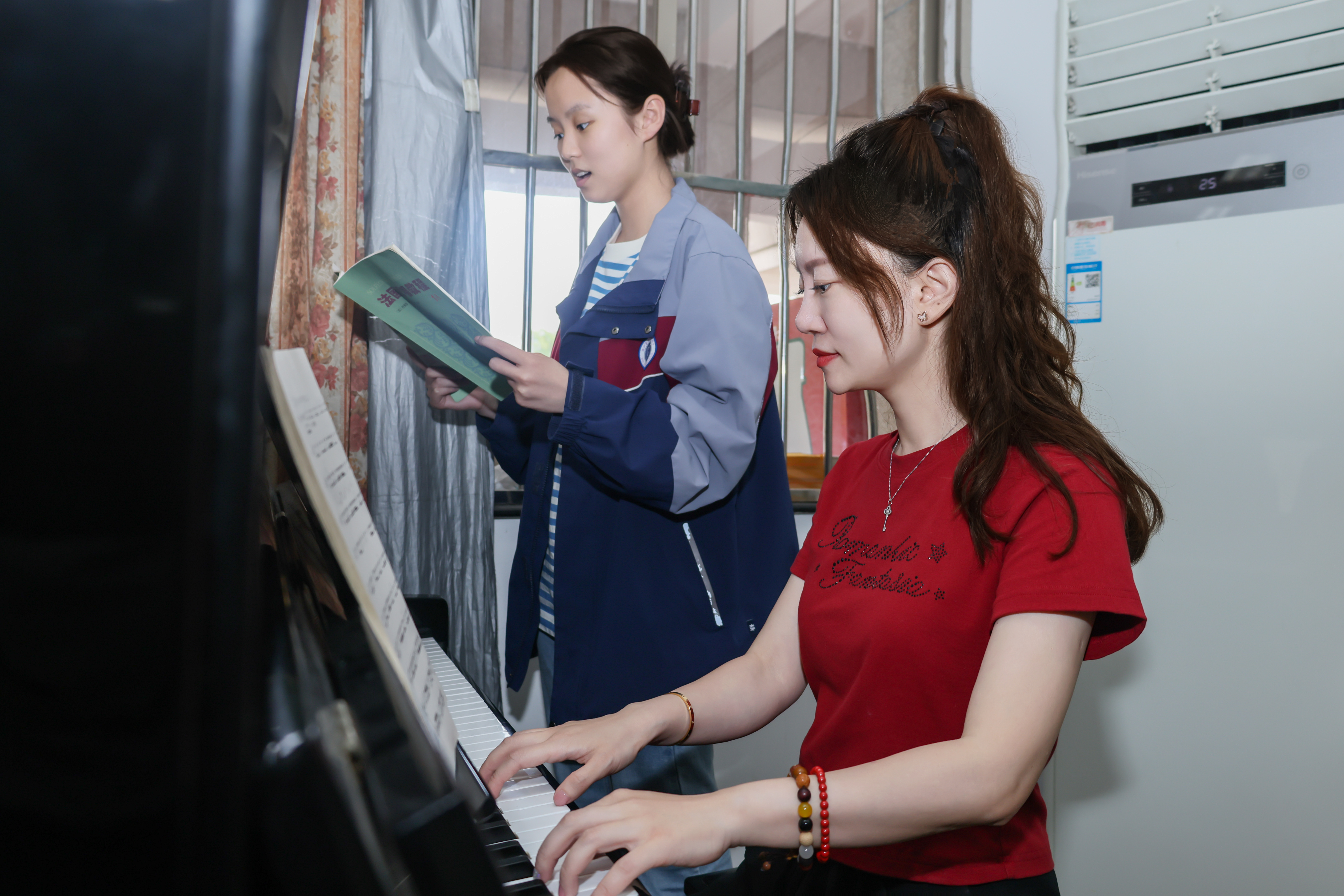 除了教授学生专业理论知识,林倢还致力于拓宽他们的艺术视野。她带领学生们畅游于古今中外的音乐海洋,从巴赫的庄严到贝多芬的激情,从周杰伦的多元风格到李宗盛的细腻深情,每一首曲目都是一扇窗,透过它可以看到不同的世界,感受到不同的情感。她教会学生,音乐是全人类共同的财富,它能够跨越时空,连接每一个渴望共鸣的心灵。