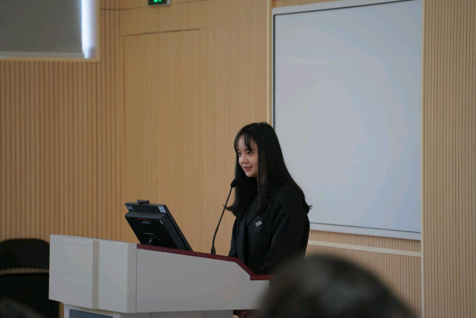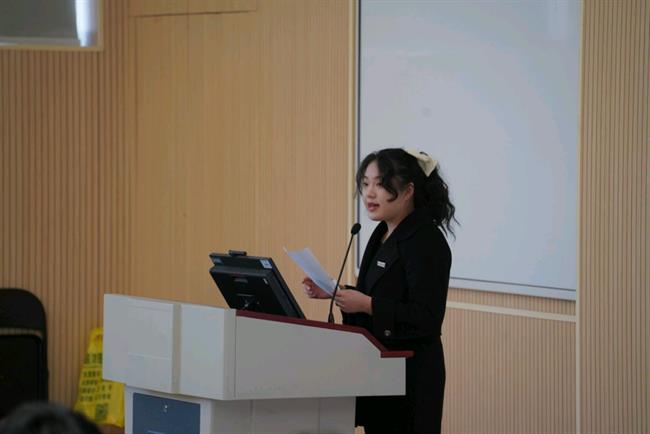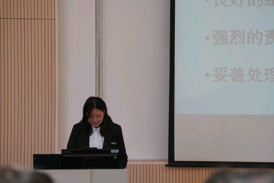 系第十九届学生会执行主席胡凯欣汇报系第十九届学生会工作报告。