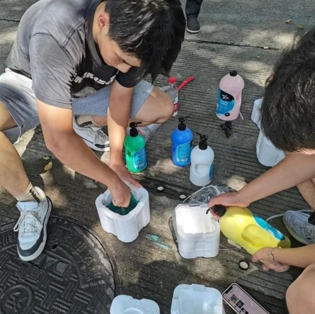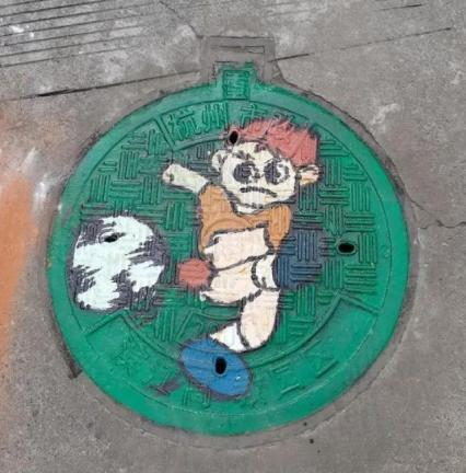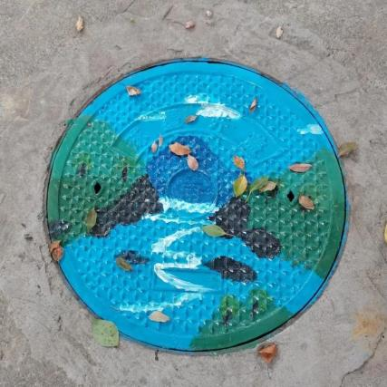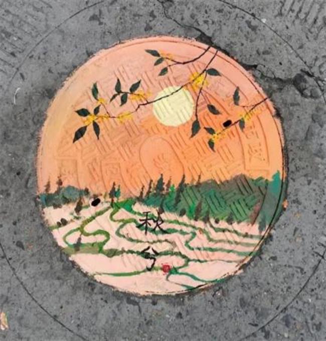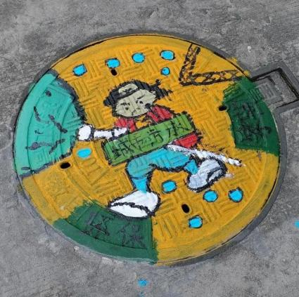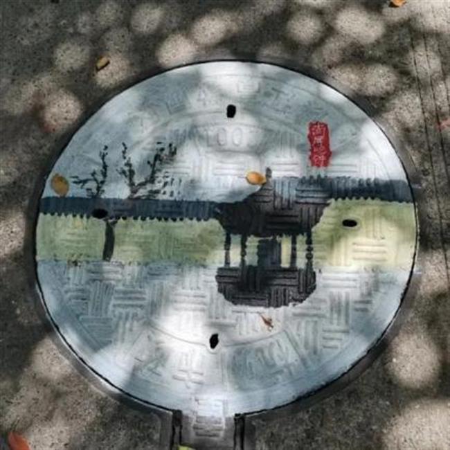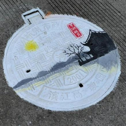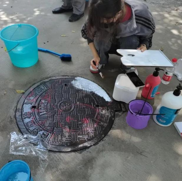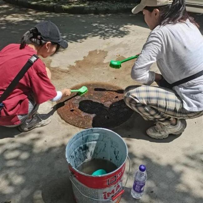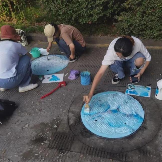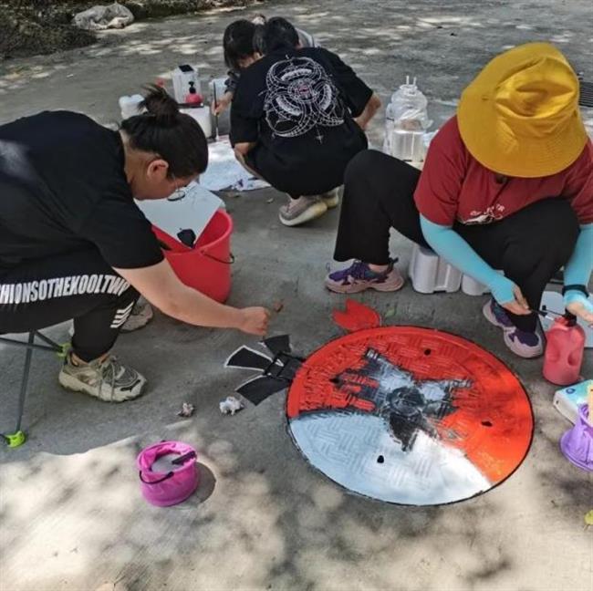 此次井盖涂鸦是由我系19级、20级学生共15人所绘。活动围绕动漫人物、环境保护、运动健康、西湖十景、二十四节气五个主题进行绘画创作。 “为井盖‘化妆’的过程并不算复杂,首先要将井盖清洗干净,用粉笔打个底稿,然后用丙烯颜料填色,晾晒一段时间后,最后用清漆刷一遍固色。”其中一位正蹲在地上的同学笑着说,“烈日下工作确实会有点辛苦,但一想到好的作品能让老师和同学们享受美,就觉得这些都是值得的。”