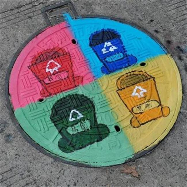 同学们顶着炎炎烈日,一双巧手、一支画笔、一盘颜料打造出一个个精妙绝伦的工艺品。经过三天的绘画,共完成61个井盖的涂鸦。下面我们一起来欣赏美术学子的优秀作品吧!
